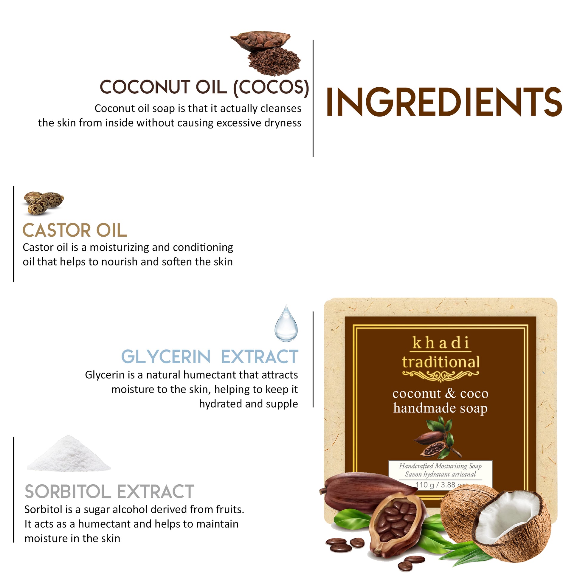 Jabón tradicional de coco y coco hecho a mano Khadi