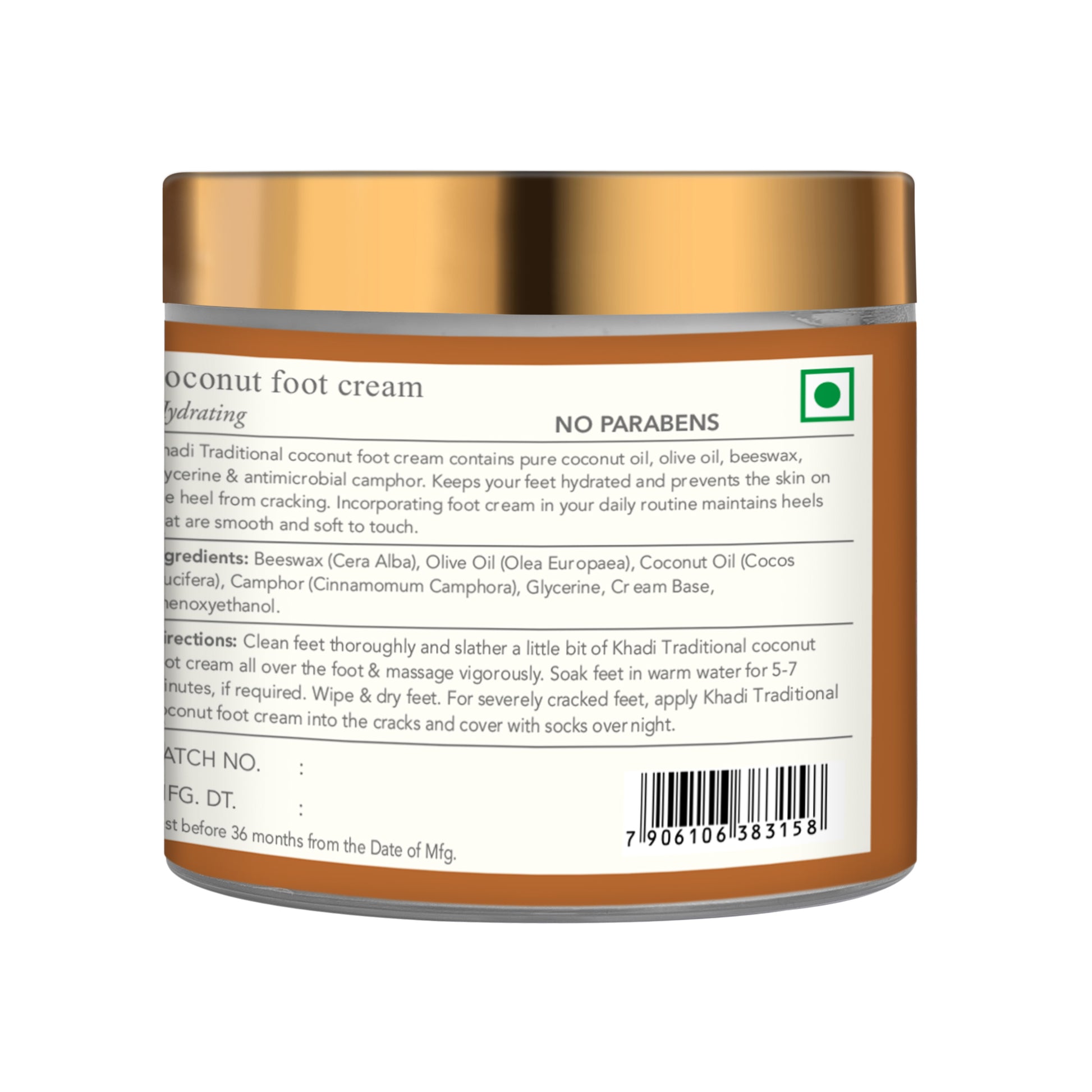 La crema tradicional de coco para pies Khadi está enriquecida con aceite de coco puro, aceite de oliva, cera de abejas y glicerina. Mantiene los pies hidratados y previene el agrietamiento de los talones. Incorpora esta crema para pies a tu rutina diaria para mantener los talones suaves y lisos al tacto.