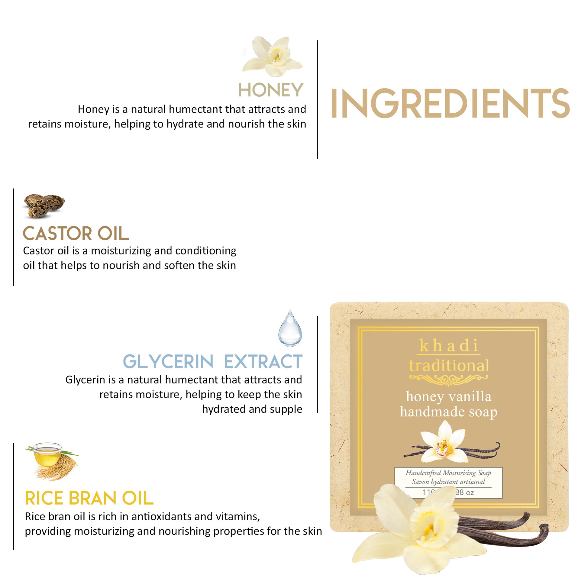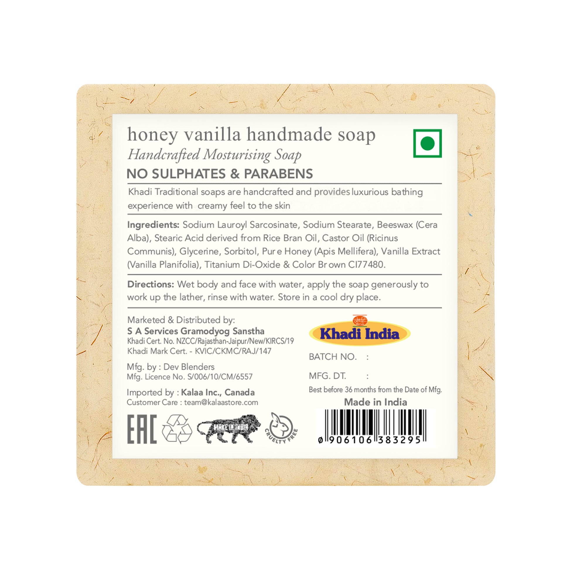 Jabón artesanal tradicional de vainilla y miel de Khadi