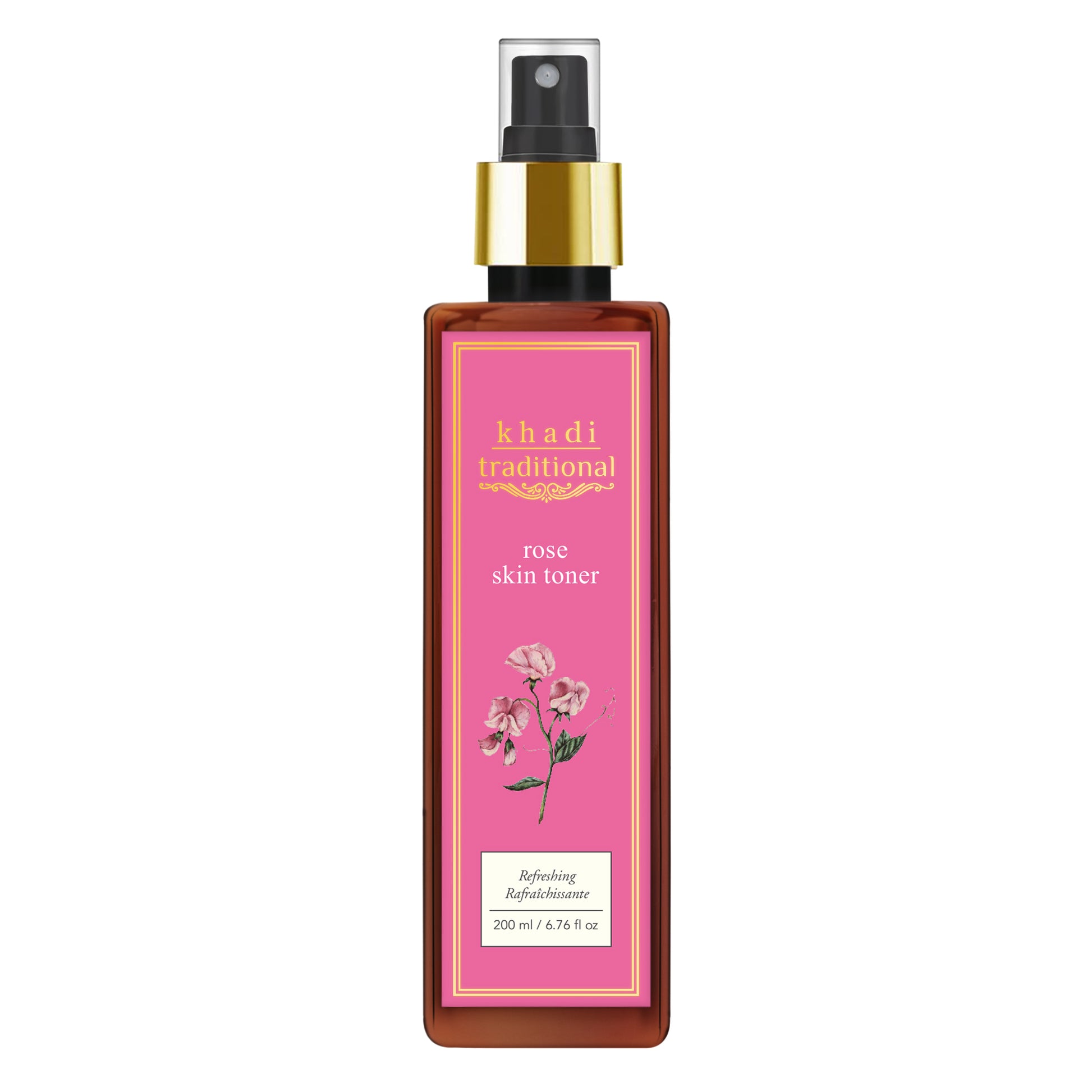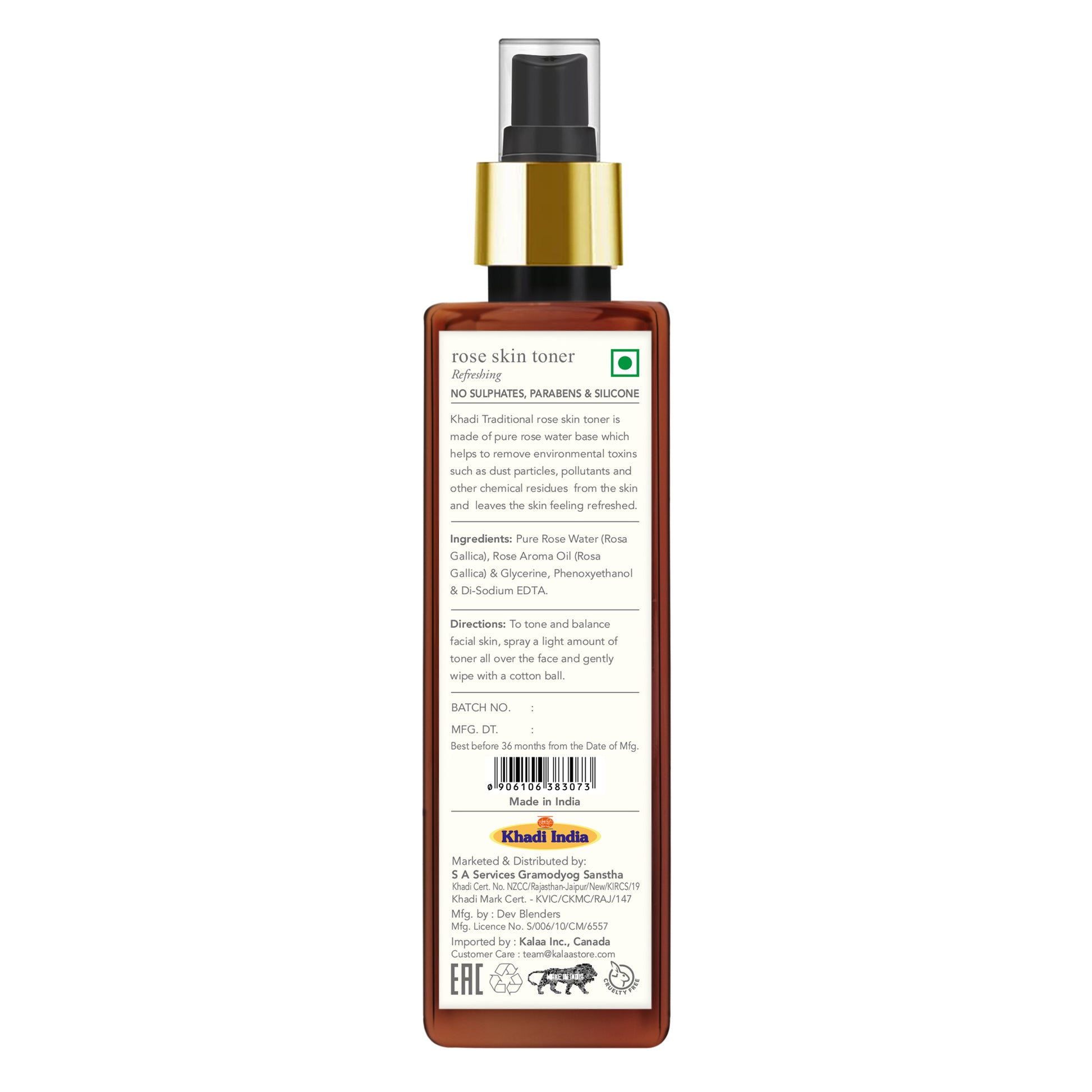 El tónico para la piel Khadi Traditional Rose está elaborado con una base de agua de rosas pura que ayuda a eliminar las toxinas ambientales, como partículas de polvo, contaminantes y otros residuos químicos de la piel, y deja la piel fresca.