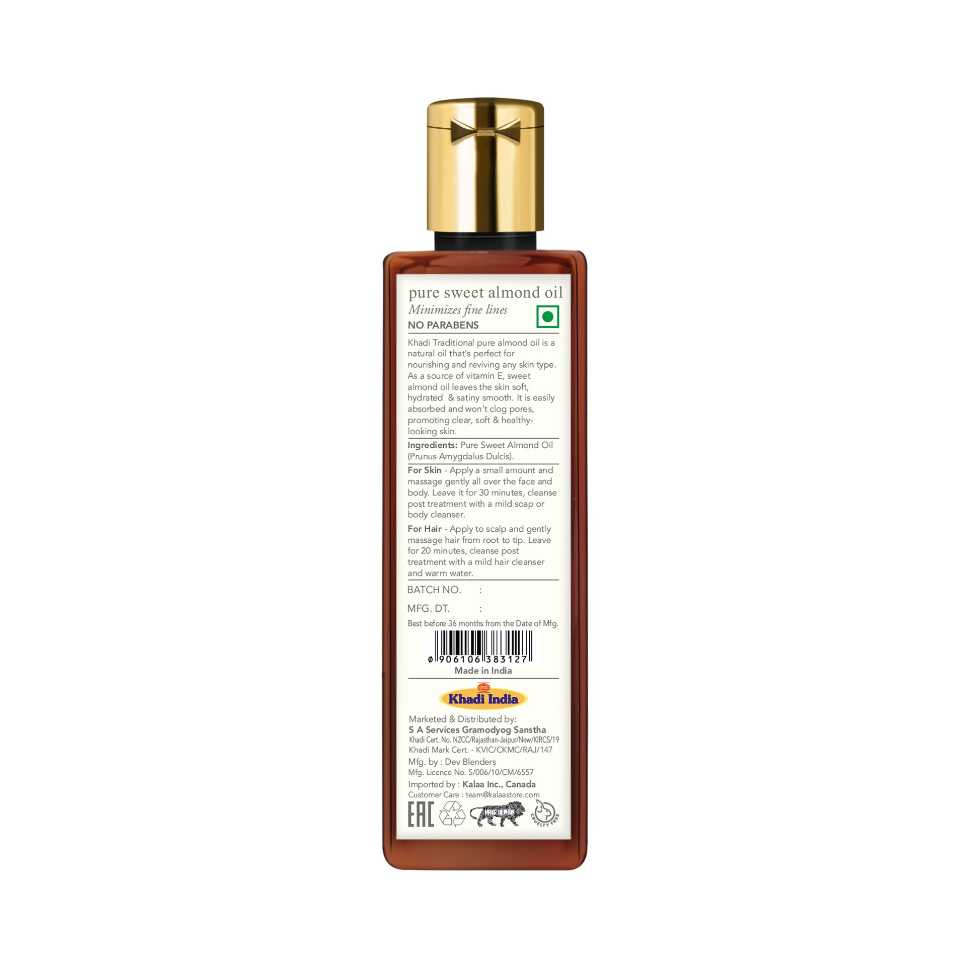 L'huile d'amande douce pure traditionnelle Khadi est une huile naturelle idéale pour nourrir et revitaliser tout type de peau. Source de vitamine E, l'huile d'amande douce laisse la peau douce, hydratée et satinée. Elle est facilement absorbée et n'obstrue pas les pores, favorisant une peau claire, douce et d'apparence saine.